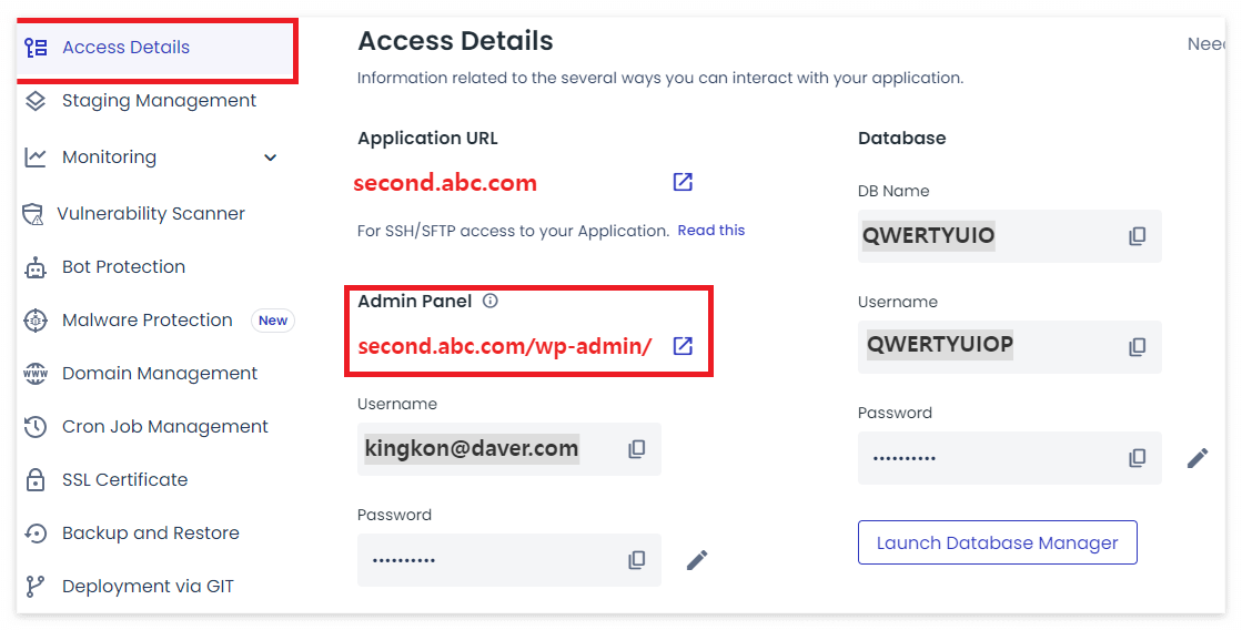 좌측 액세스디테일 메뉴를 클릭합니다. 두 번째 어드민 패널 주소가 바뀌었을 것입니다. 바로가기 버튼을 눌러 이동합니다