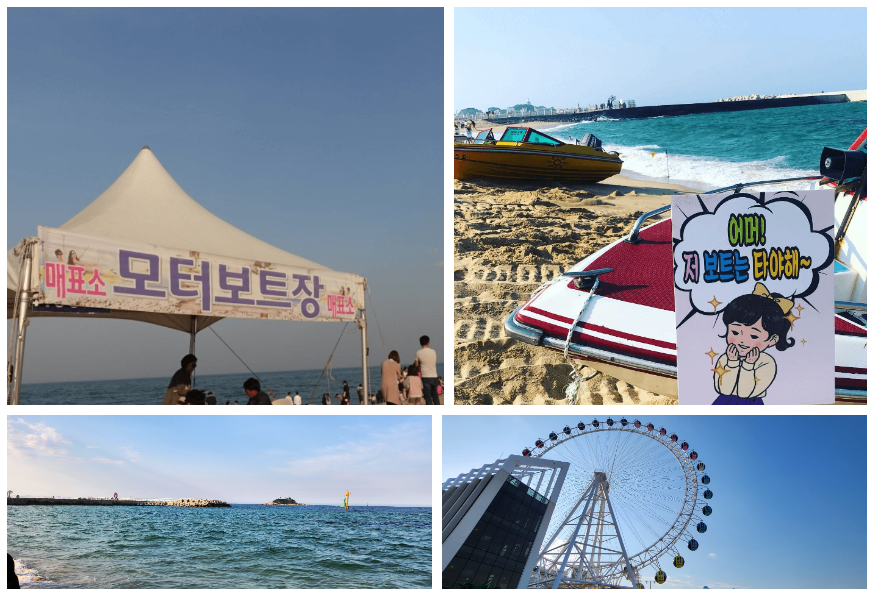 두 번째 액티비티 보트 타기로 향했습니다. 보광 미니 골프장에서 15분 거리에 있습니다. 속초의 그 유명한 속초아이 대관람차가 있는 해안입니다. 속초여행의 사진 찍는 핫플레이스 바로 속초해수욕장입니다. 속초 해수욕장 바로 옆에 공영주차장에 주차를 할 수 있습니다.