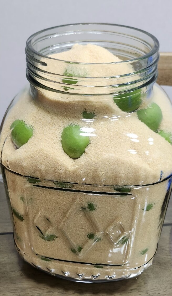 (6) 매실 덮일 정도로 설탕을 붓습니다.