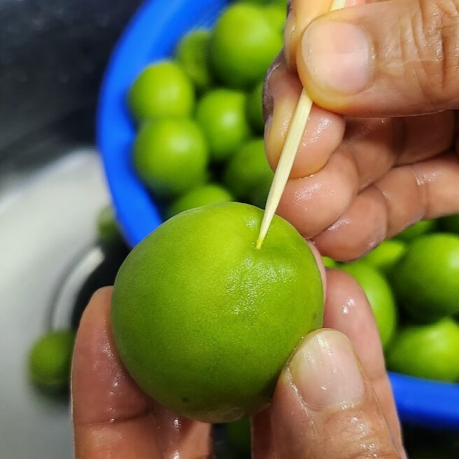 (1) 깨끗이 세척하고 매실의 아래 꼭지를