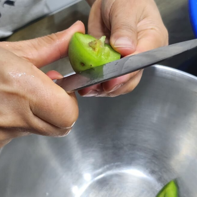 제거한 매실을 칼을 이용하여 조각